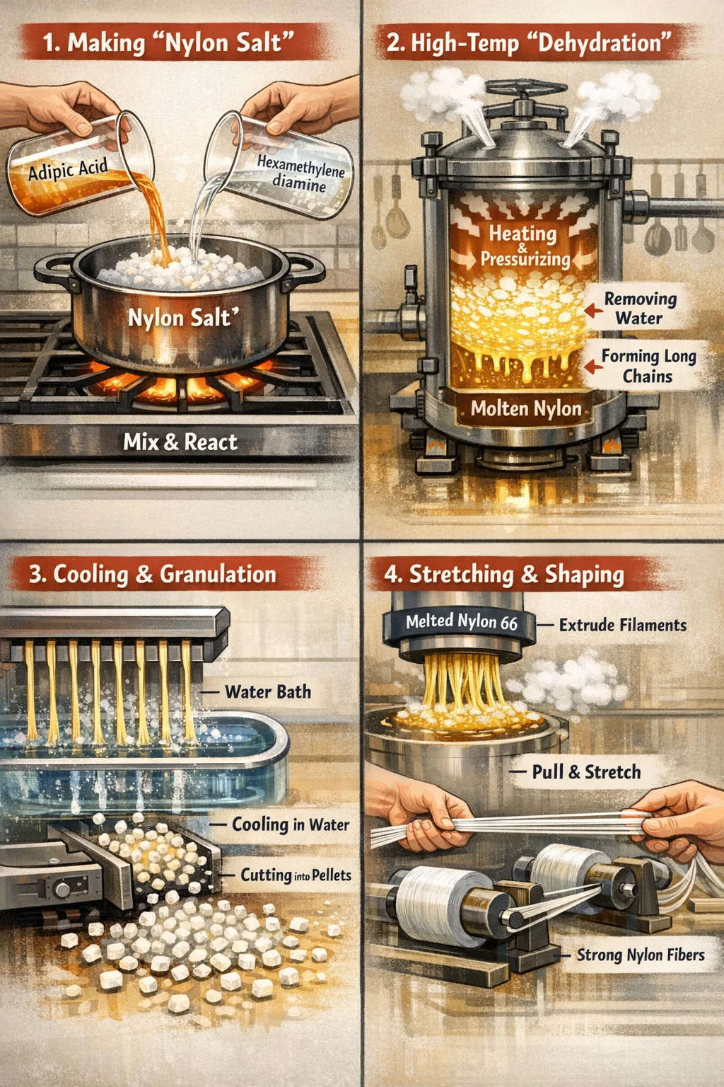 ナイロン 66 を製造するための簡単な手順は次のとおりです。