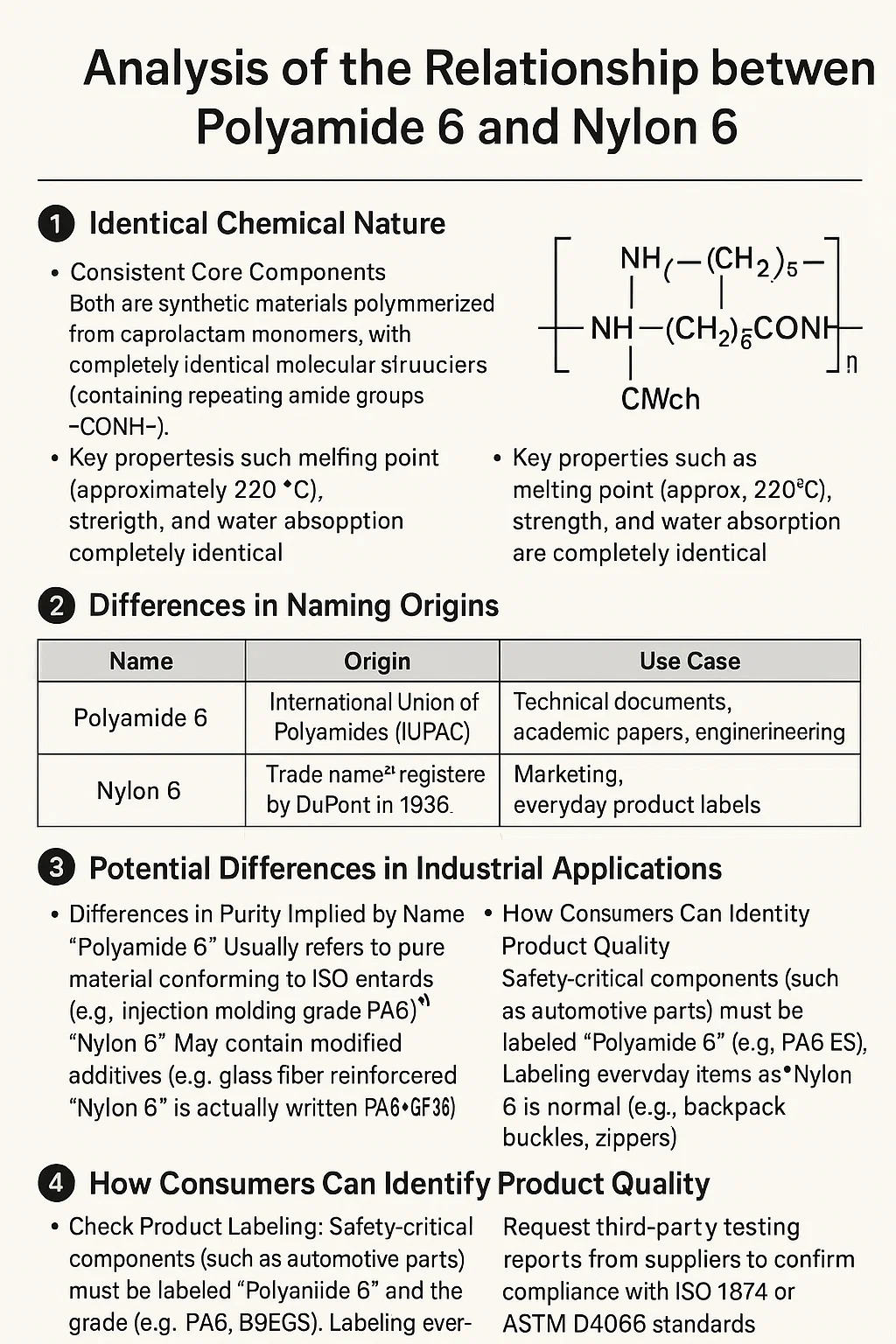 • 一貫したコア成分: どちらもカプロラクタムモノマーから重合された合成材料であり、完全に同一の分子構造 (繰り返しのアミド基 -CONH- を含む) を持ちます。