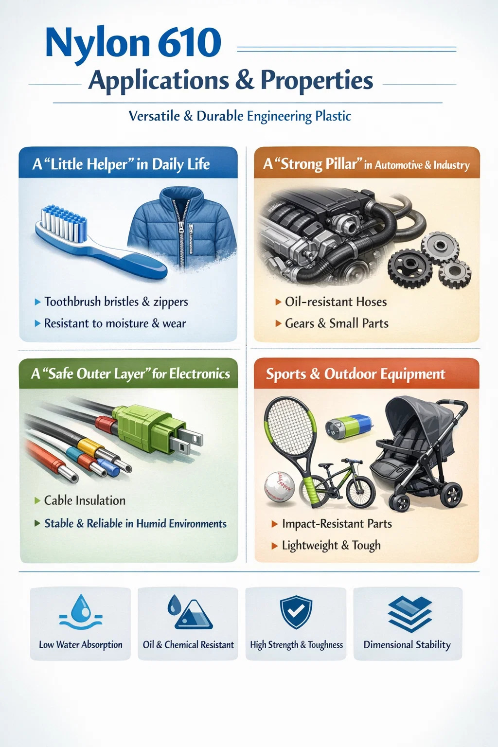 ナイロン 610 (PA610) は、非常にバランスの取れた特性を備えた高性能エンジニアリング プラスチックです。一般的なナイロン 6 と高級ナイロン素材の間に位置し、そのユニークな特性により、多くの特定の用途で非常に人気があります。